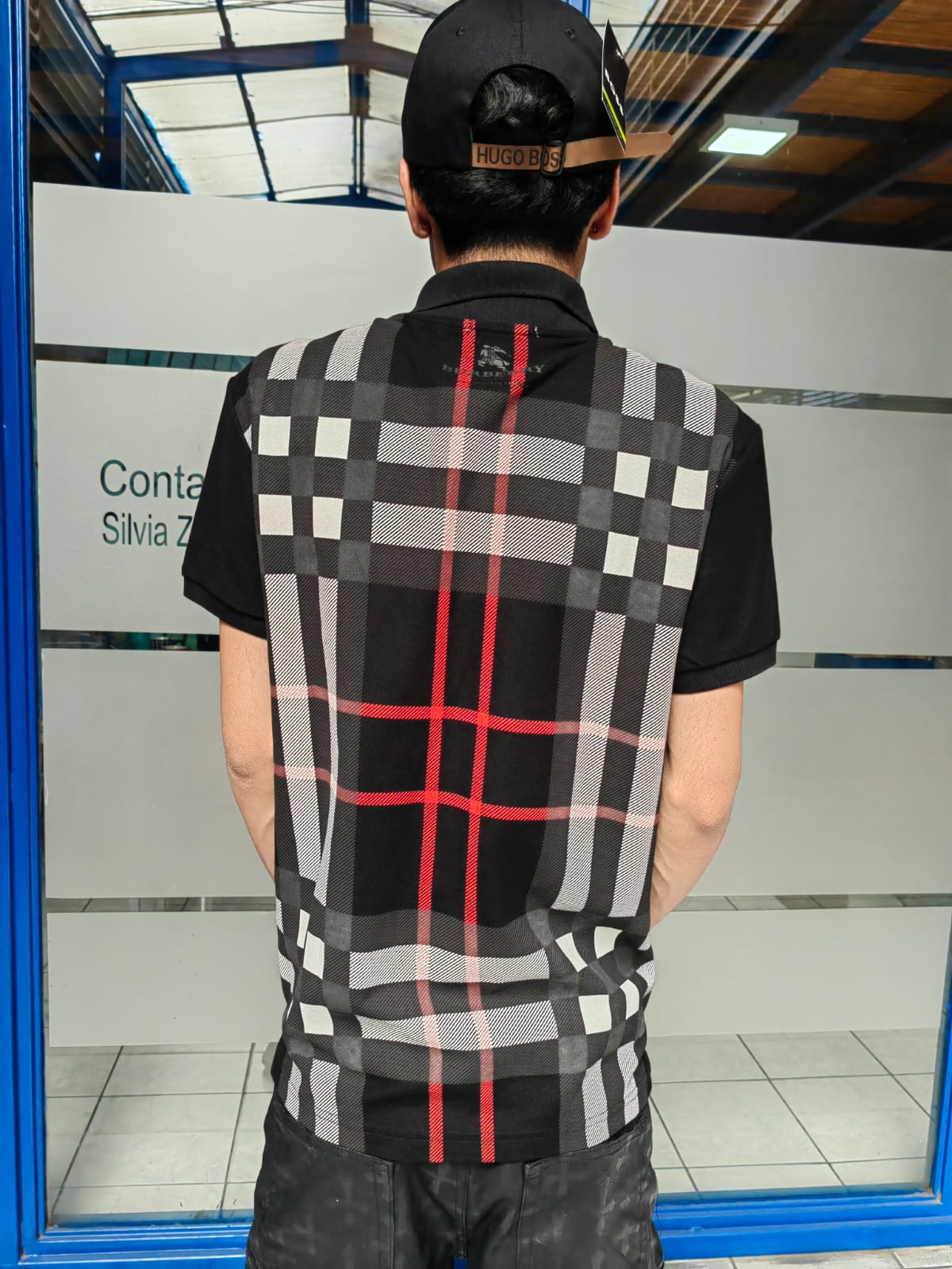 POLERA G5 PIQUE BURBERRY NEGRA